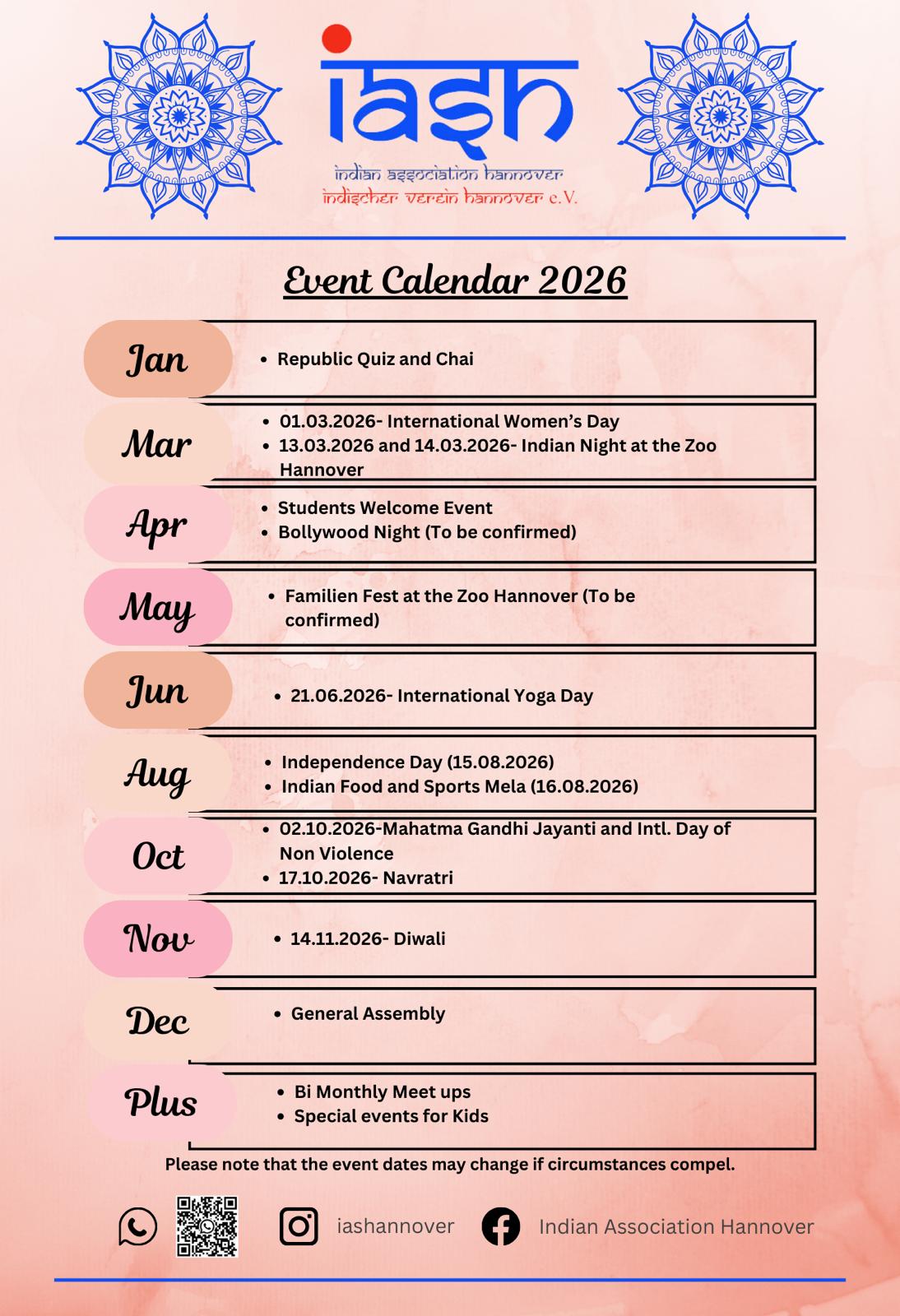 Founded in 2010 by Dr. Bala Subramanian Ramani, the Indian Association Hannover began as a student initiative and became a registered non-profit, non-political organization in 2013. Since then, IASH has evolved into a dynamic platform for cultural exchange and community support. Our mission is to serve the social, cultural, and educational needs of the Indian community in Hannover and promote Indo-German understanding through diverse events and initiatives. We welcome everyone who shares our values of diversity, community, and togetherness.